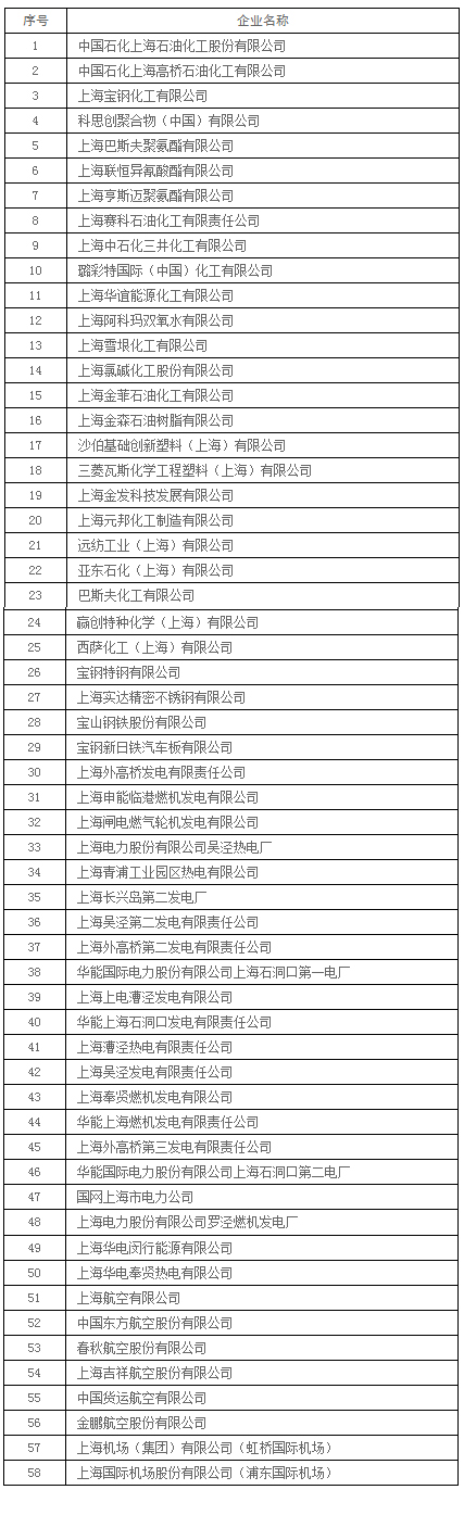 附件:1、本市納入國家2016、2017年度碳排放報告與核查及排放監測計劃制定工作的重點排放企業名單