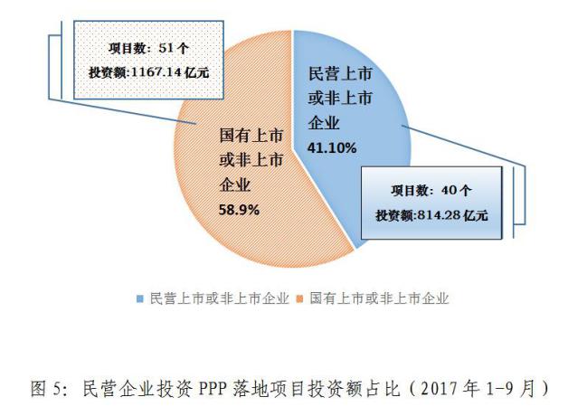 2017年9月,民營企業以聯合體牽頭方或者單獨作為社會資本方落地項目投資額206.95億元。2017年1-9月累計投資額814.28億元,占41.10%。