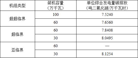 燃煤電廠各機組標桿值的選取標準為:超超臨界以及60萬千瓦超臨界機組參考《煤電節能減排升級與改造行動計劃(2014-2020)》(發改能源〔2014〕2093號)中的先進值,30萬千瓦超臨界及亞臨界機組采用本省納入企業同類型機組現役最先進值(具體數值見附件1-2);采用天然氣、煤矸石等其他燃料的發電企業,其標桿值等于企業基準年間單位綜合發電量碳排放量的加權平均值,每年碳強度的權重為當年綜合發電量占三年綜合發電總量的比例。