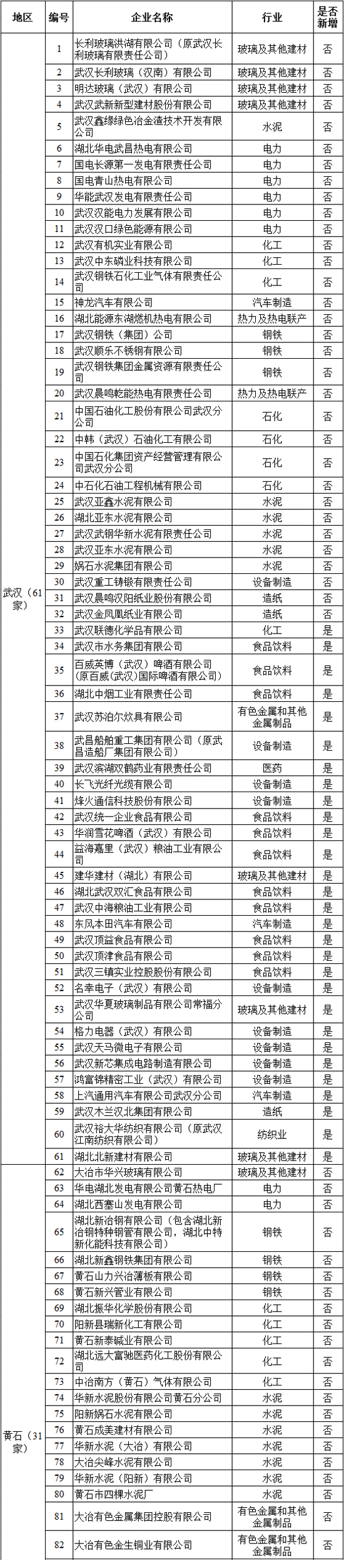 ? ? ? ? ?2、湖北省2017年納入碳排放配額管理企業清單