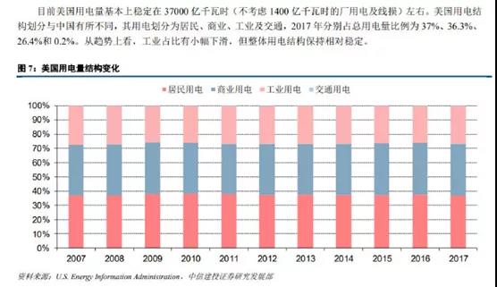 而美國則是居民和商業用電合計超過了70%,工業用電不到30%。