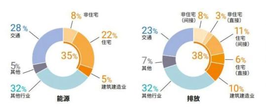 2019年全球建筑建造行業終端能耗和碳排放占比