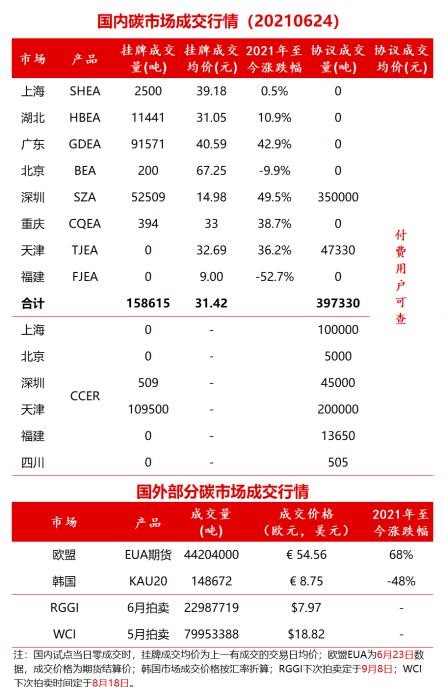 6月24日國內(nèi)碳市場交易行情:2021年至今漲幅最高到達49.5%。