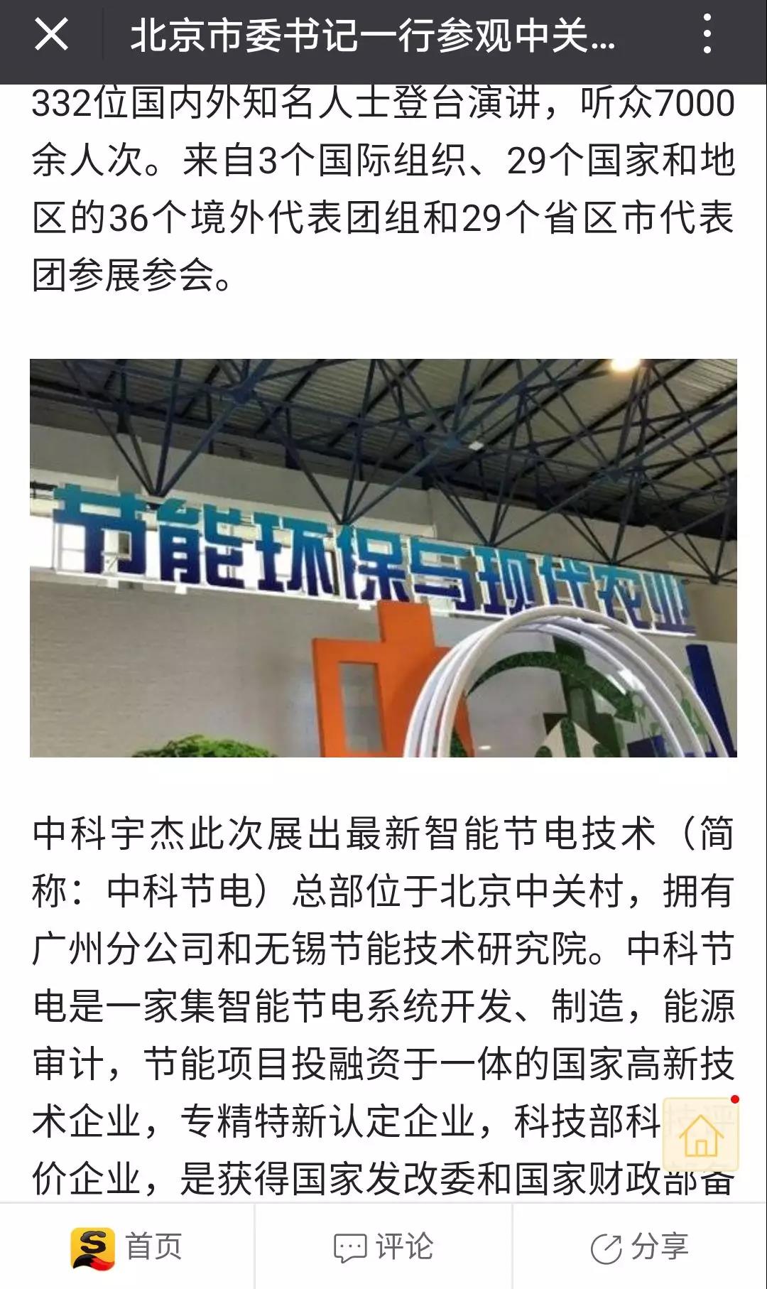 厲害了!中科節電技術在科博會上備受北京領導關注,引搜狐新聞報道!
