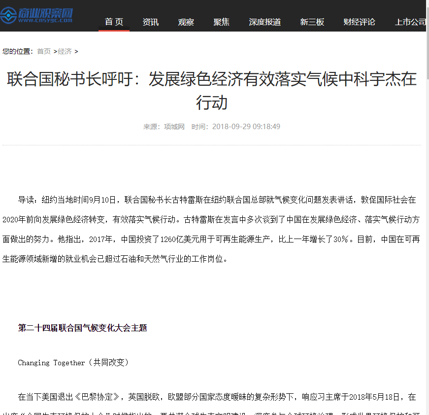 聯(lián)合國(guó)秘書(shū)長(zhǎng)呼吁發(fā)展綠色經(jīng)濟(jì)有效落實(shí)氣候行動(dòng)