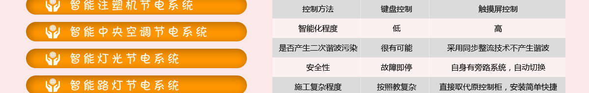 自主研發的CUP重要處理器,直觀的將節電率,用電時間,電壓,電流等等數據,通過觸摸顯示器呈現出來,真正實現智能化控制,操作簡便,直觀,全部功能通過觸摸屏控制,操作起來猶如您使用的iPhone手機一般。