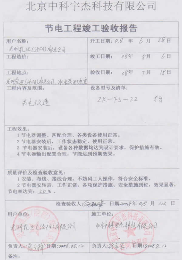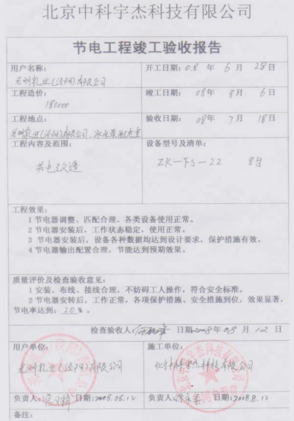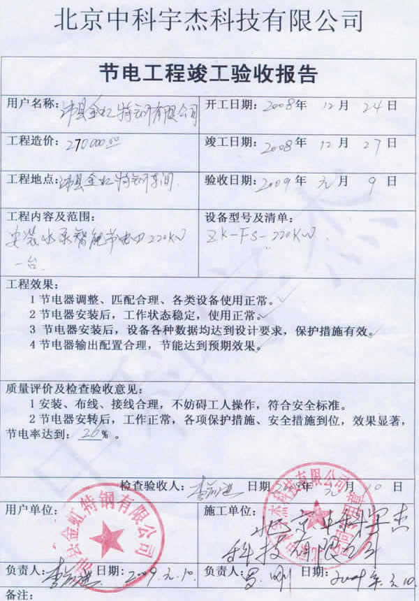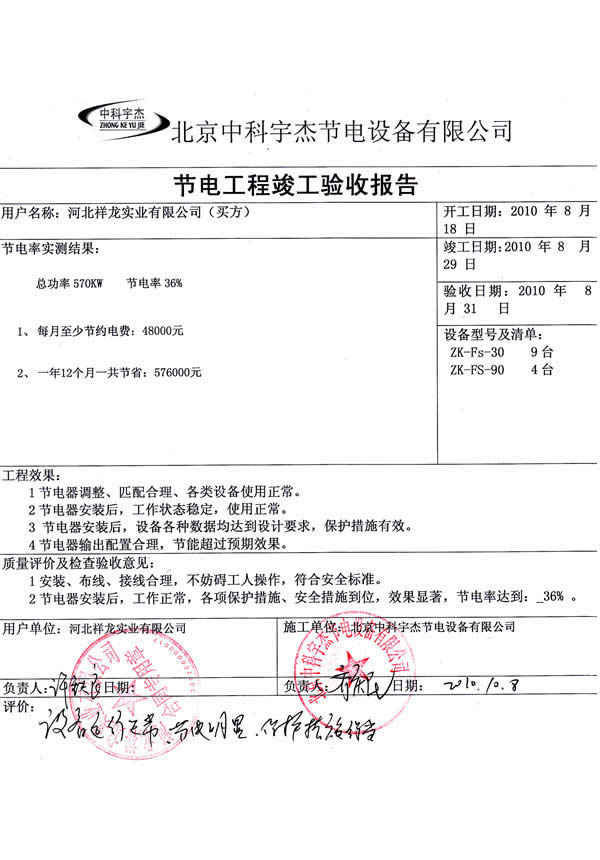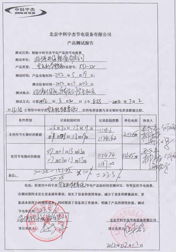 中科宇杰憑著十多年來的行業經驗,累積完成項目500多項,包括眾多國內外知名企業,如聯合利華、錦江集團垃圾發電廠、法國羅蓋特、美國通美晶體、印尼金安漿業、新安化工、中能硅業、太平洋恩利、全友家私、京燕水利、金川開發區等企業與機構,服務網點更延伸海外地區。平均節能率在15%-20%,最高節電率達56.7%,累積為用電企業節省電費過數億元。