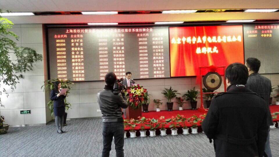 2015年1月20日,隨著董事長(zhǎng)郝澤忠與總裁徐科飛的攜手一敲,上海股權(quán)托管交易中心內(nèi)銅鑼的響起,北京中科宇杰節(jié)電設(shè)備有限公司(下稱:中科宇杰)正式登陸Q板市場(chǎng)。股票簡(jiǎn)稱:中科節(jié)電,股票代碼:203567。